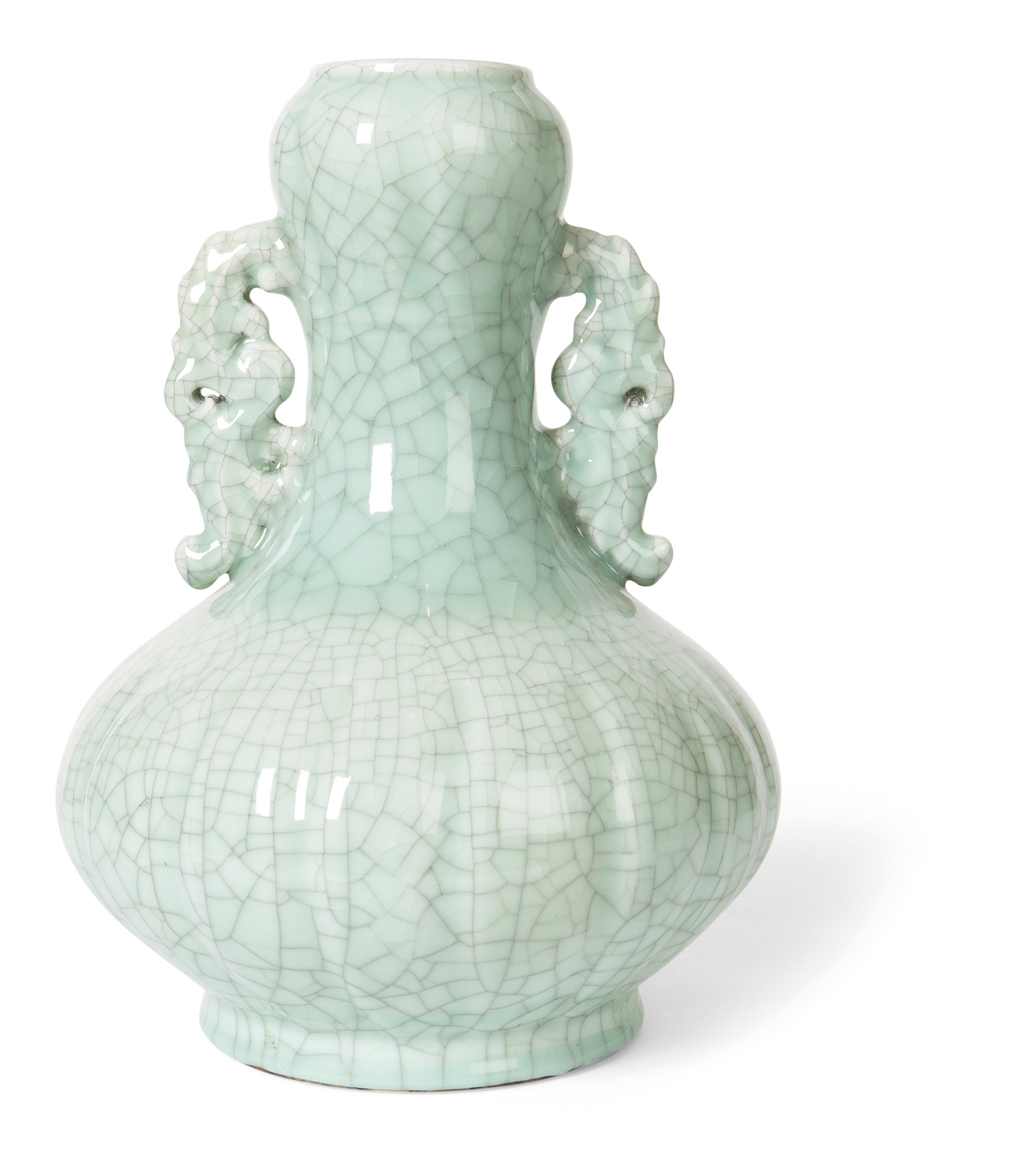 A CELADON CRACKLE GLAZE GARLIC MOUTH VASE