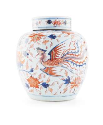 decorated all over with phoenix and flowers in the typical palette of iron red, gilt and underglaze blue