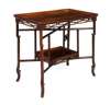 the recessed rectangular top with a deep moulded edge over an openwork frieze on a folding frame stand centred by a separate tray undertier