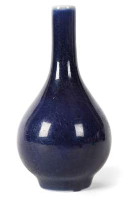 A MINIATURE POWDER BLUE BOTTLE VASE