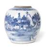 the sides painted with a pavillion amongst blossoming trees within a mountainous landscape, the shoulders decorated with a stylised ruyi band, the cover lacking
