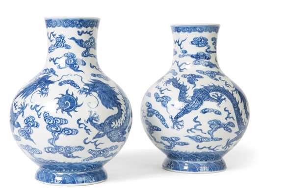PAIR OF BLUE AND WHITE 'DRAGON' VASES