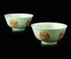 FINE PAIR OF CELADON GROUND AND IRON RED 'PHOENIX' MEDALLION BOWLS
