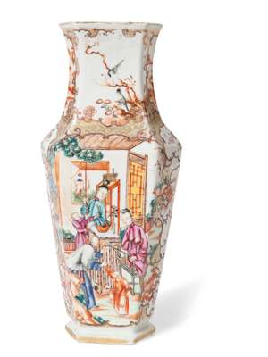 of squared baluster form, decorated with reserve panels depicting scholars, boys, courtly ladies and attendants, against a gilt enriched ground