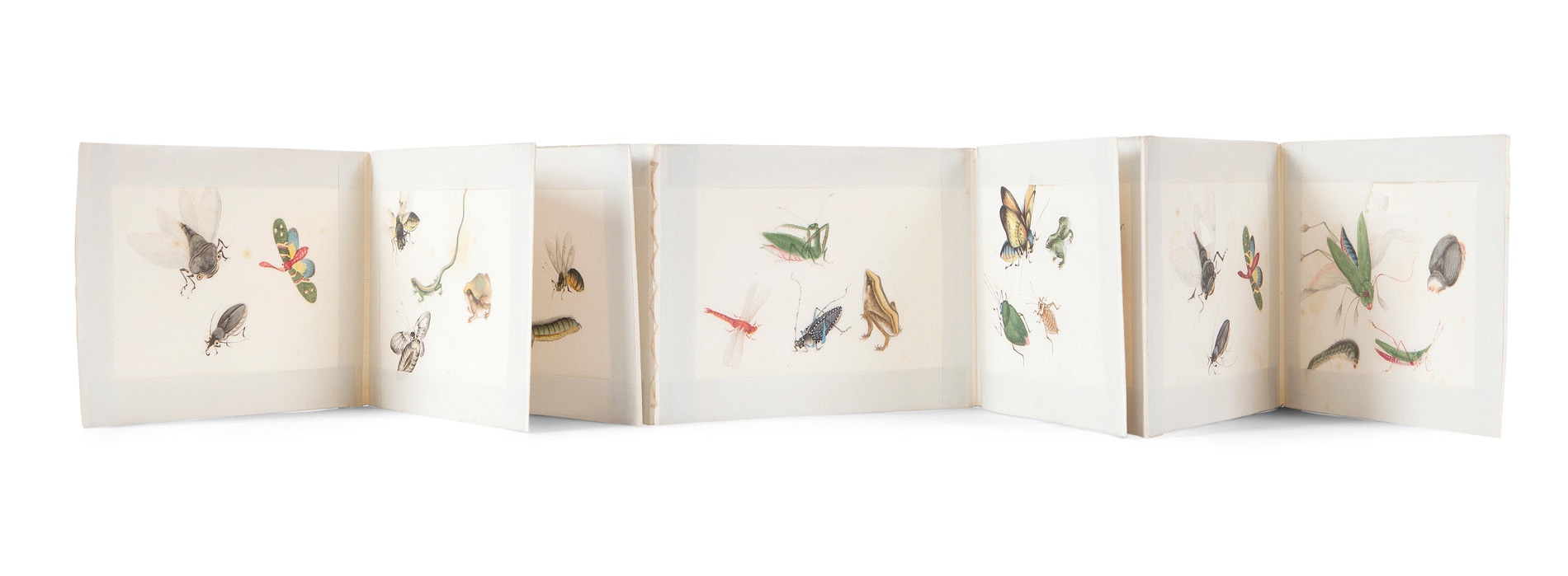 AN ALBUM OF CHINESE EXPORT PITH PAPER PAINTINGS OF INSECTS