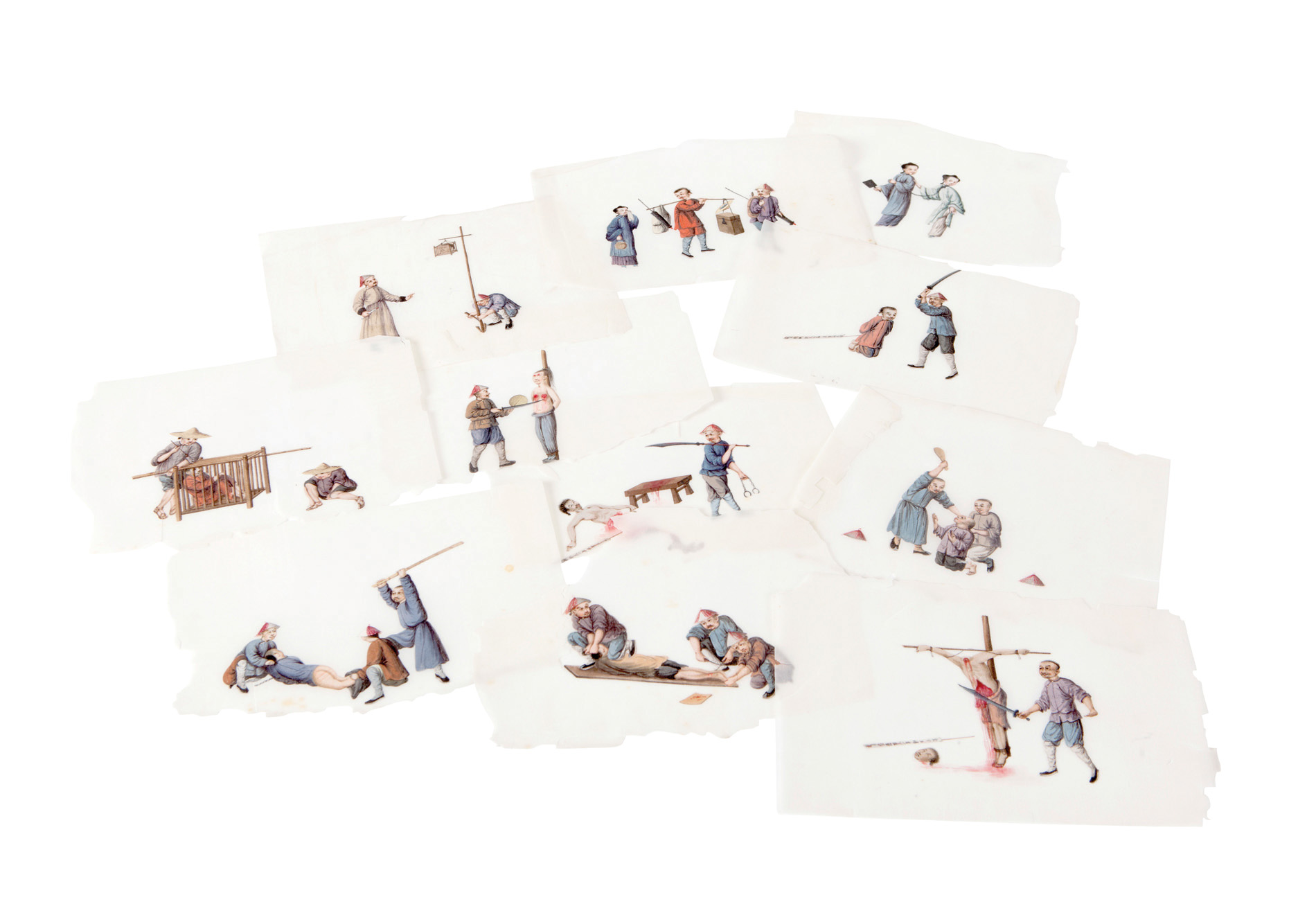 GROUP OF CHINESE EXPORT PITH PAPER PAINTINGS OF TORTURE SCENES