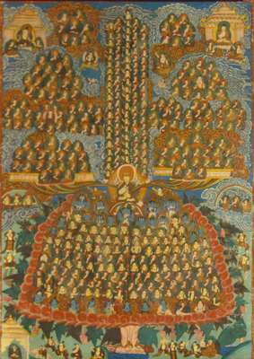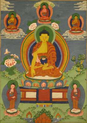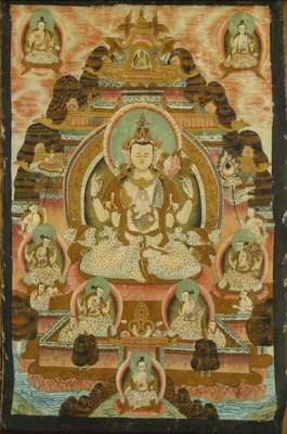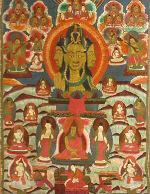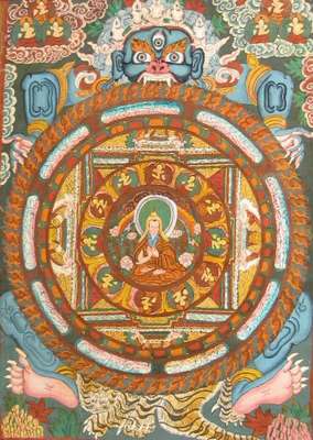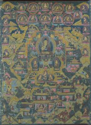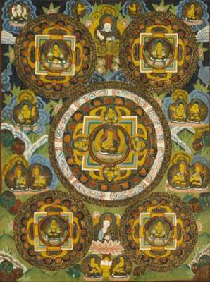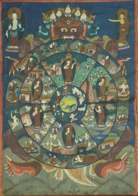 each unmounted thanka painted with symbols, figures and diagrams emblematic of the buddhist philosophy (10)