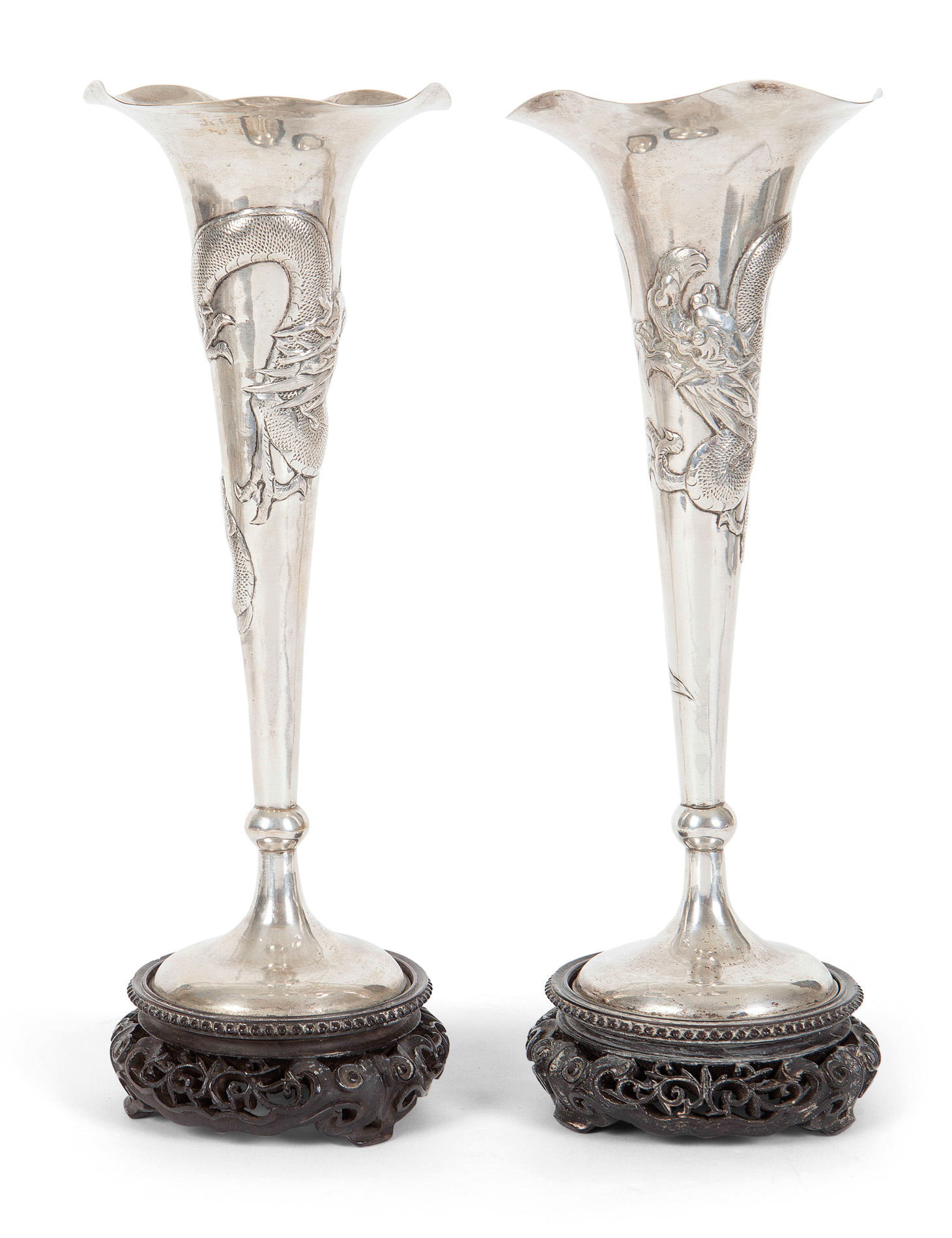 PAIR OF CHINESE EXPORT SILVER VASES ‡