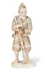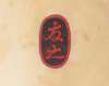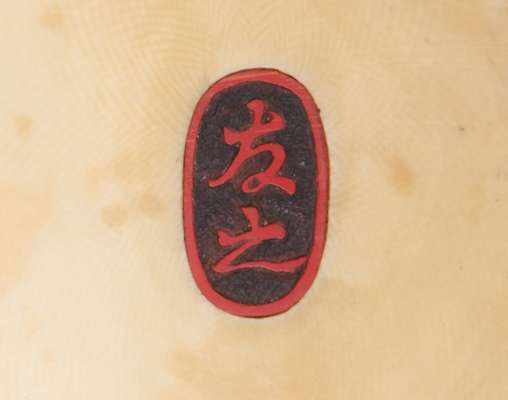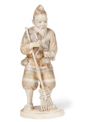 the bearded man with a rake and holding a tobacco pouch and pipe, two character red lacquer signature panel to the base