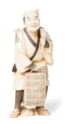 AN IVORY OKIMONO OF A BARBER