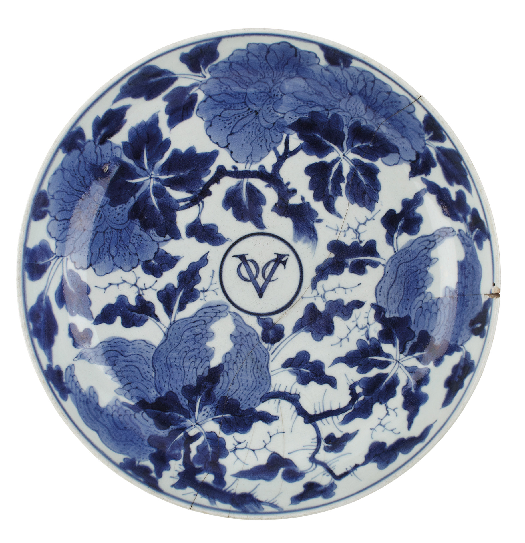 decorated with citron and peony enclosing a central monogram of the Dutch East India Company, 'VOC'