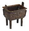 of tapered rectangular form with upright bale handles, the sides with relief panels of stylised taotie masks, raised on round straight legs, unmarked