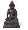 seated in dhyanasana on a double lotus base, the right hand in bhumisparsa mudra, with traces of original gilt and painted surface