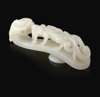 LARGE WHITE JADE 'DOUBLE DRAGON' BELT HOOK