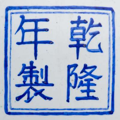 the sides finely decorated with peach blossom and wisteria against a yellow ground, Qianlong four character mark