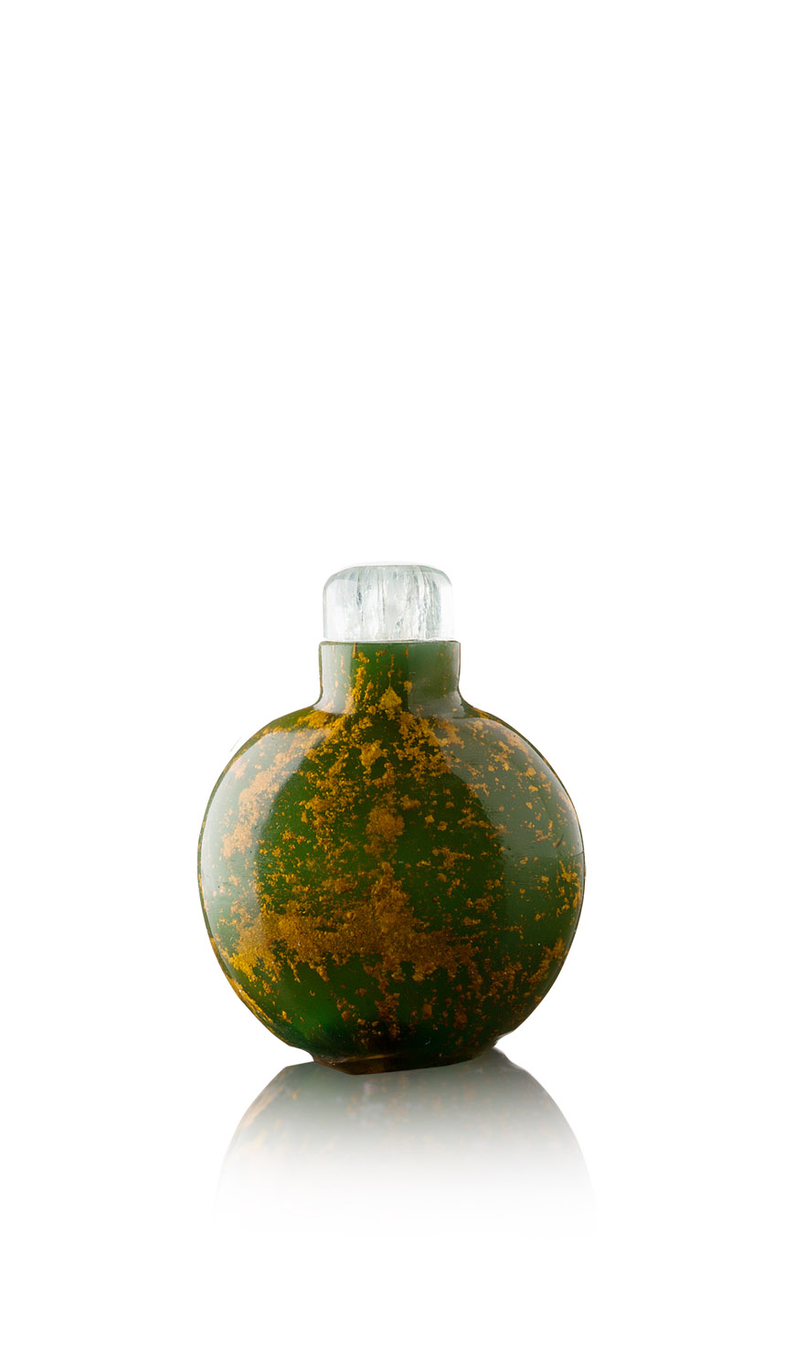 GREEN GLASS AND AVENTURINE SPLASH SNUFF BOTTLE