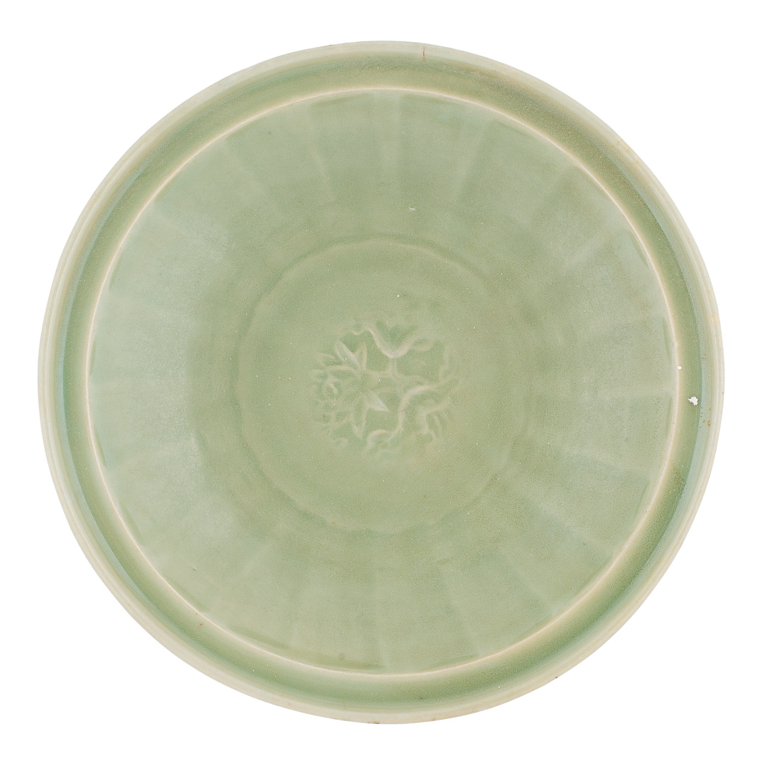 the wide shallow bowl with a lobed well centred by a carved lotus blossom