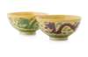 PAIR OF GREEN AND AUBERGINE GLAZE YELLOW GROUND 'DRAGON' BOWLS