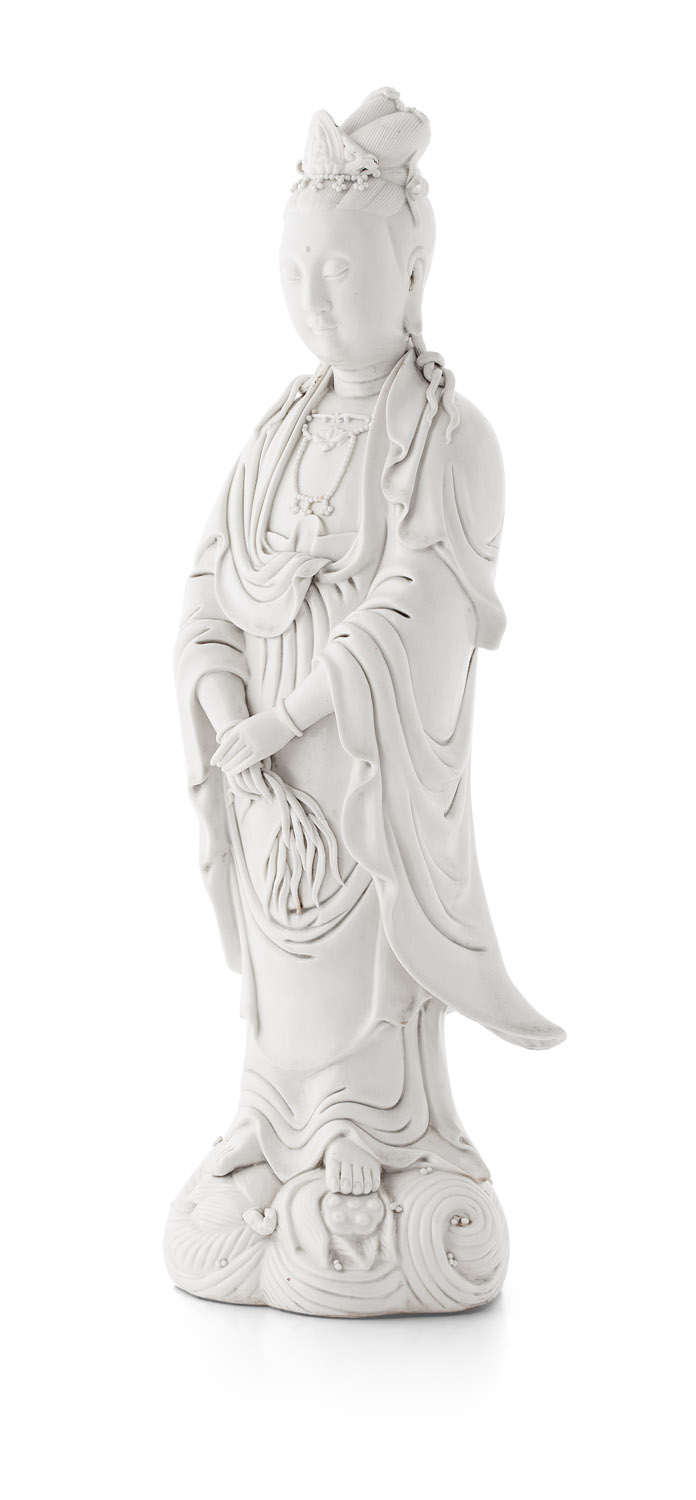 the figure with serene expression holding wisteria in her right hand and standing on clouds, impressed mark