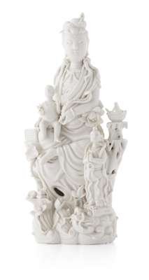 BLANC DE CHINE FIGURE OF GUANYIN AND CHILD WITH ATTENDANT