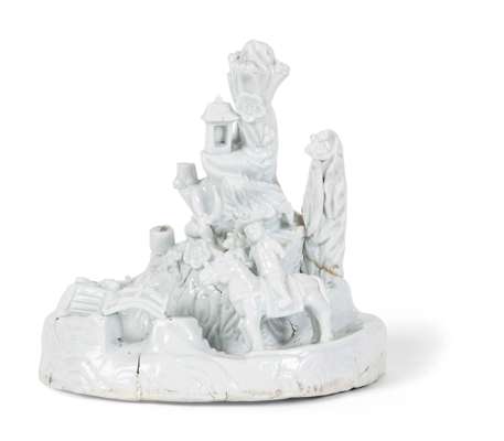 comprising a figure of a European gentleman on horseback in a rocky landscape
