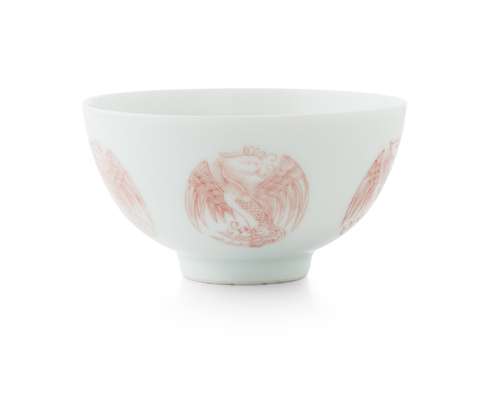 the sides finely painted in iron red with phoenix medallions against a white ground