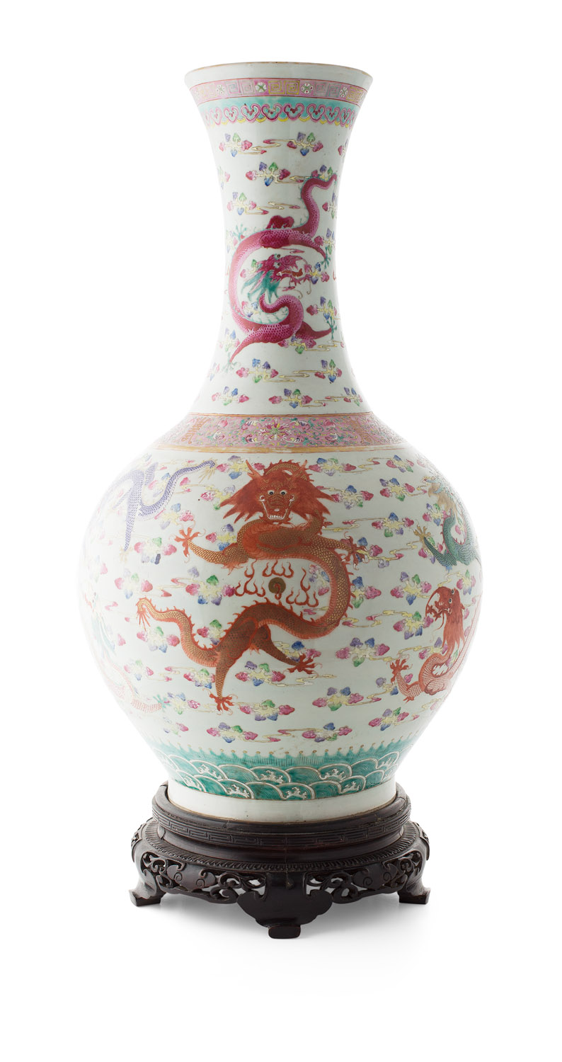 LARGE FAMILLE ROSE 'DRAGON AND CLOUD' VASE