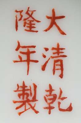 the slightly flared bowls painted with flower head motif against a sgraffito decorated yellow ground, Qianlong six character marks (2)