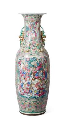LARGE CANTON ROSE MANDARIN BALUSTER FLOOR VASE