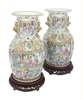 PAIR OF CANTON ROSE MANDARIN CELADON GROUND VASES