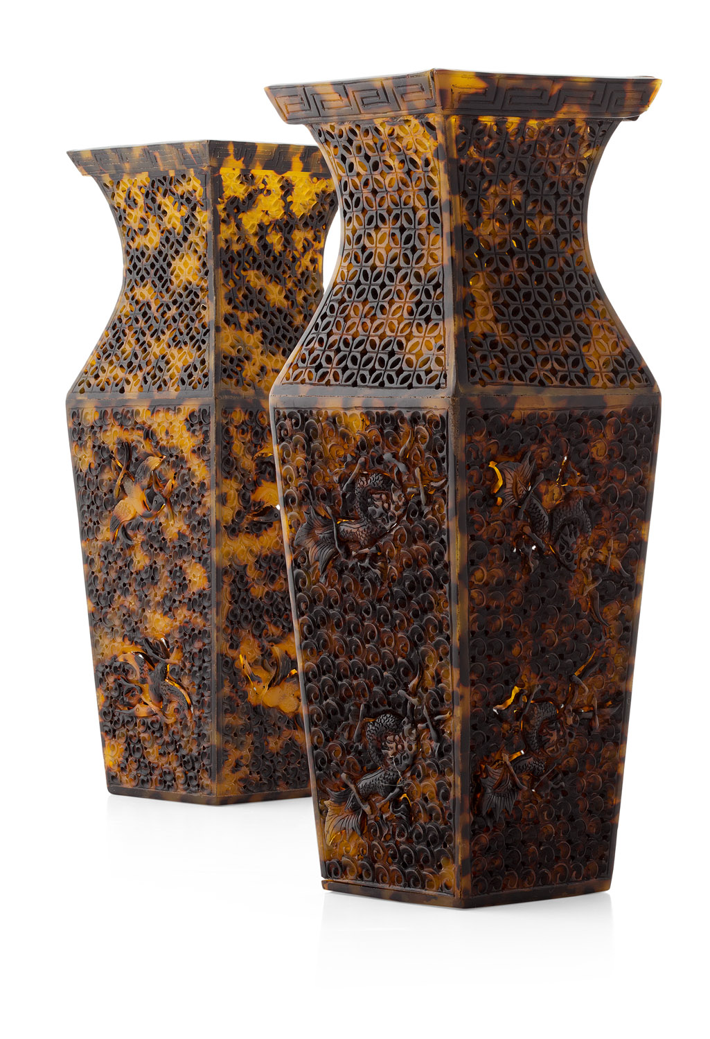 PAIR OF RETICULATED TORTOISESHELL VASES