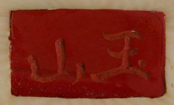 the standing figure holding a basket and a hoe over her shoulder, inset red lacquer signature