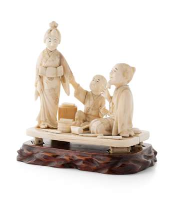 JAPANESE CARVED IVORY OKIMONO OF A FAMILY GROUP