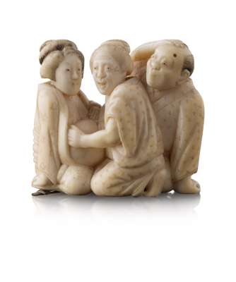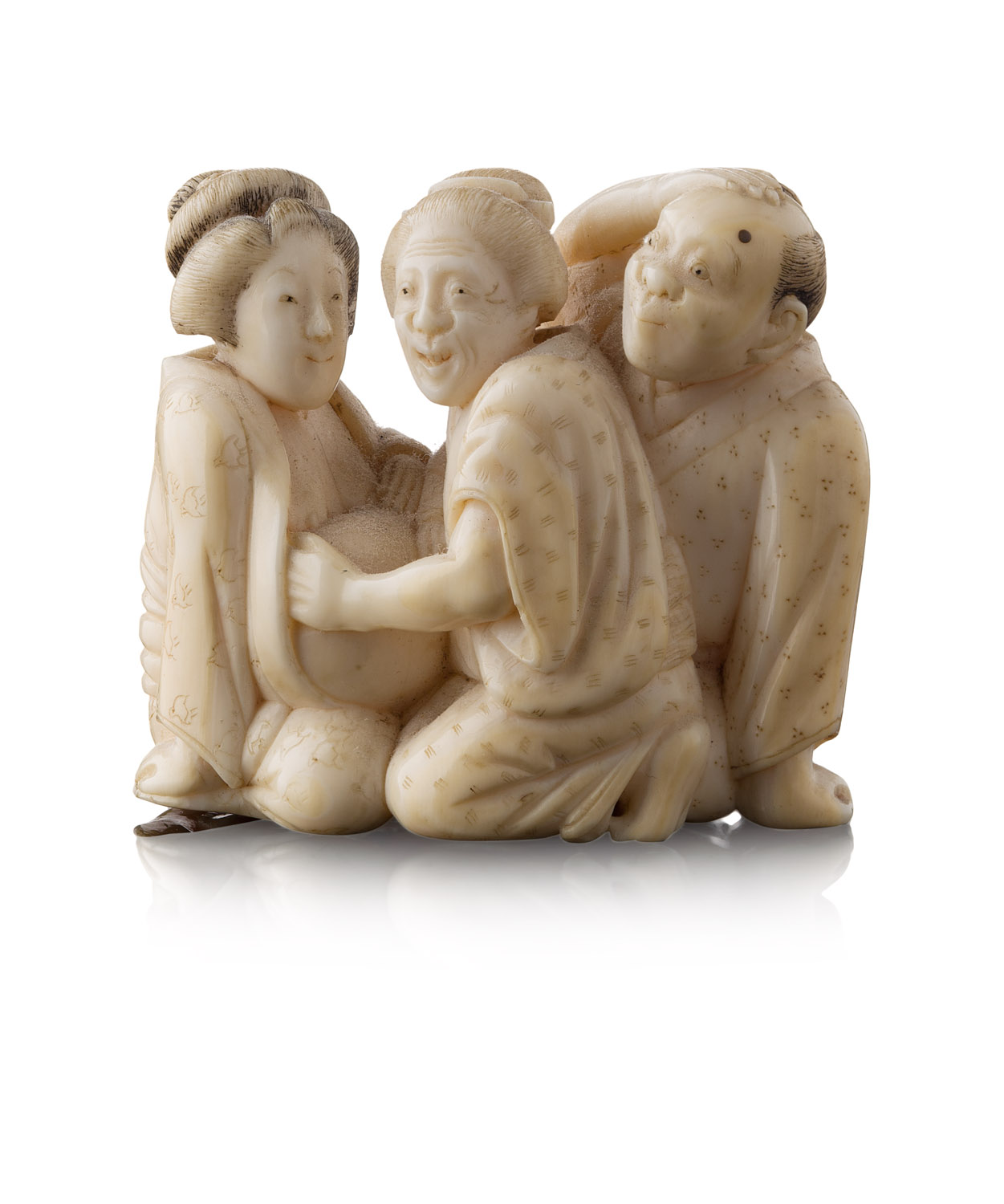 JAPANESE IVORY NETSUKE OF A PREGNANT WOMAN