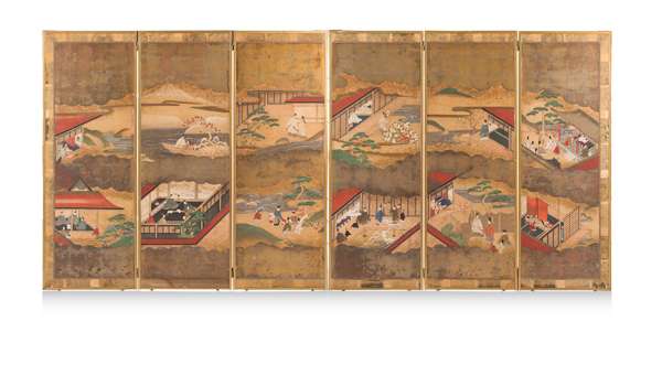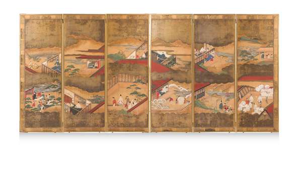 A PAIR OF JAPANESE SIX PANEL SCREENS