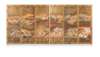 depicting scenes from the Tale of Genji, in ink, colour, and gold on paper; double sided mounts, twelve panels total, with silk borders and gilt frames (2)