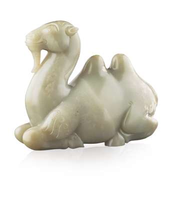 CARVED CELADON JADE OF A RECUMBENT CAMEL