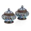PAIR OF TIBETAN-STYLE ENAMELLED METAL VASES AND COVERS Y
