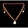 composed of a single graduated strand of amber beads with a jadeite pendant of tapering form carved with double gourds, with a single amber and jadeite drop on either side