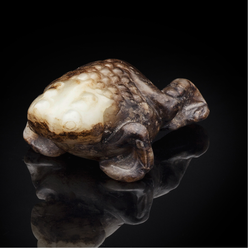 CARVED WHITE AND DARK BROWN JADE PENDANT