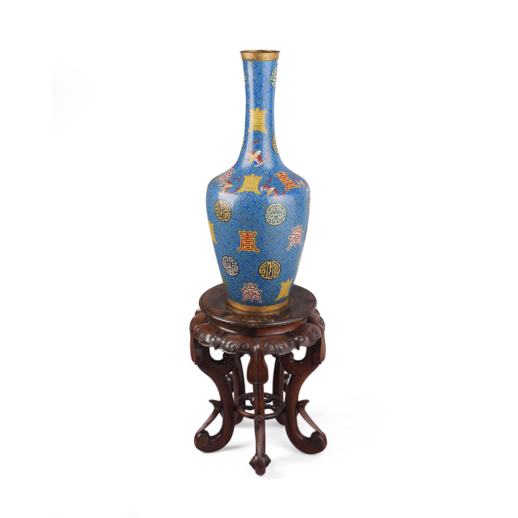 the baluster sides decorated in cloloured enamels with bats and sylised symbols