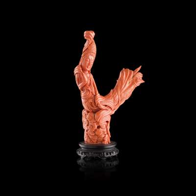 modelled as Guanyin floating on a cloud, on wood stand