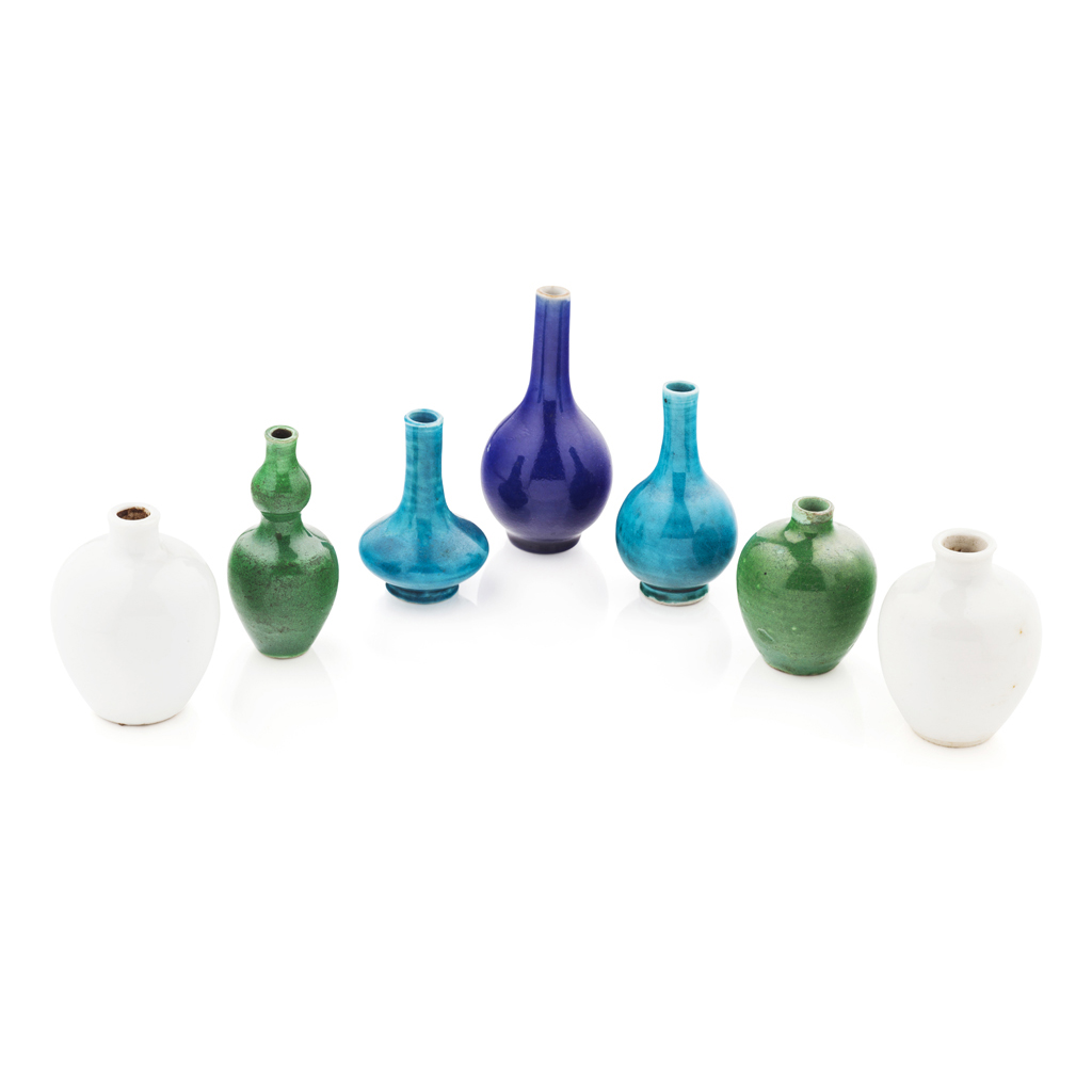 SEVEN MINIATURE MONOCHROME VASES
