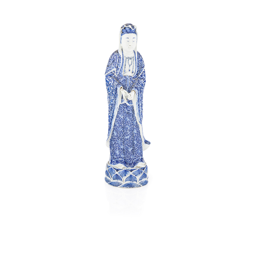 LARGE BLUE AND WHITE FIGURE OF GUANYIN