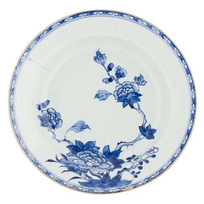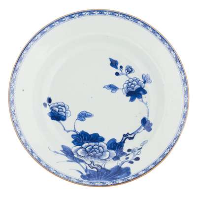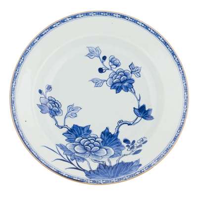 SET OF FIVE EXPORT BLUE AND WHITE DISHES