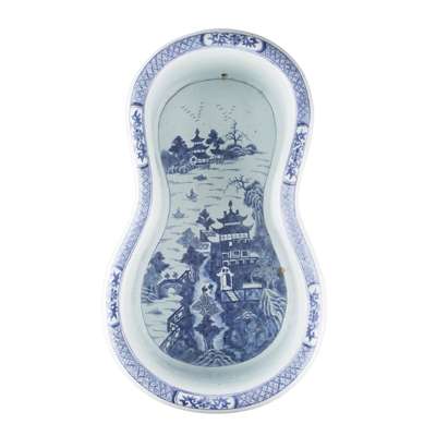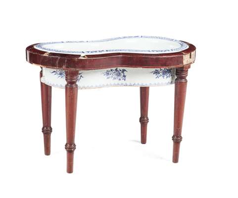 decorated with figure and pagoda with a landscape view, together with an English mahogany and horsehair stand
