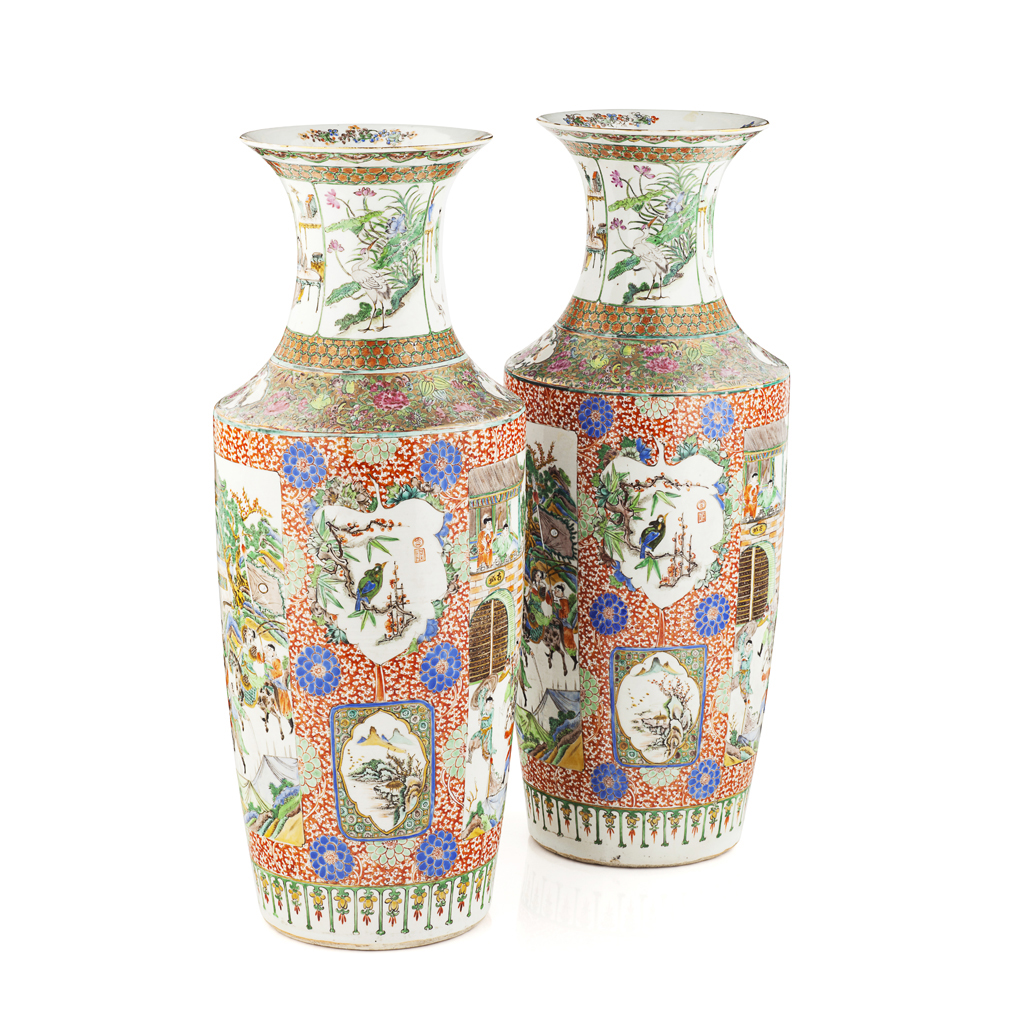 FINE PAIR OF CANTON ROULEAU VASES