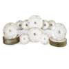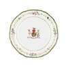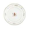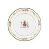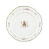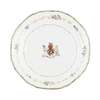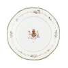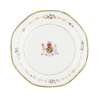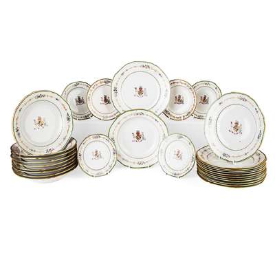 bearing the coat-of-arms of Alexander quartering MacDonald, the motto "Per Mare Per Terras" surmounted by a semi-nude man holding a club on one side of the shield and a mermaid on the other, the shield beneath a beaver atop a crown, the outer band decorated with flowers joined by bamboo, the shaped gilt rim with green sawtooth border, comprising of: 4 side plates,, 10 soup plates, 13 dinner plates, and 2 later English sandwich plates (29)