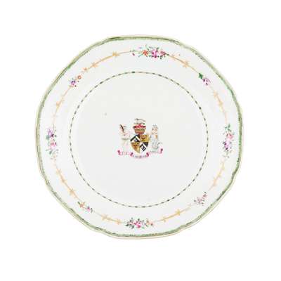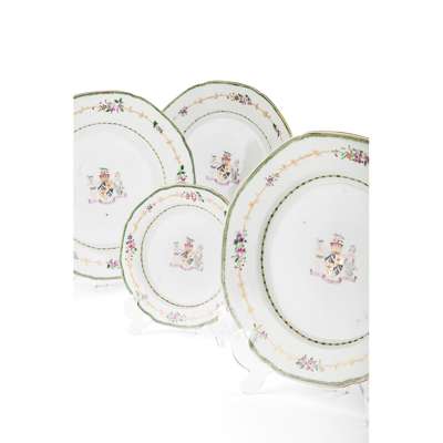 IMPORTANT CHINESE EXPORT ARMORIAL PART DINNER SERVICE FROM THE SERVICE OF WILLIAM ALEXANDER OF NEW YORK (1726-1783)