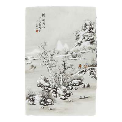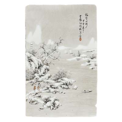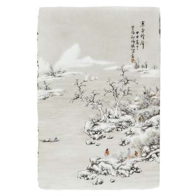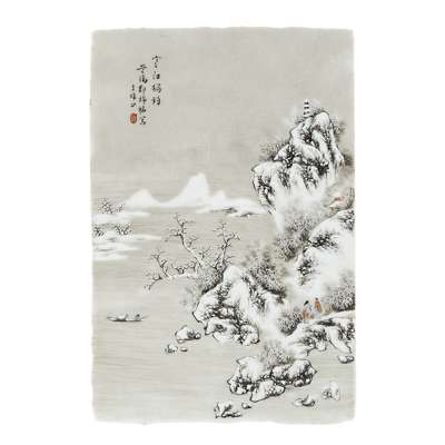 depicting figures on the shores of a lake, one with pavilions, all within a winter landscape with mountains and clouds in the background (4)